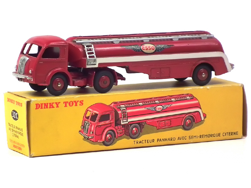 DINKY TOYS (FRANCE) 32C PANHARD Semi-remorque citerne 'ESSO' (version avec jantes convexes) rouge (décalques 'grandes ailes')