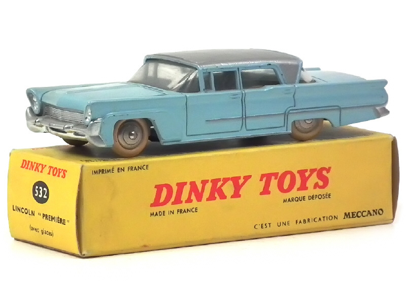 DINKY TOYS (FRANCE) 532 LINCOLN PREMIERE (version avec jantes convexes) bleu ciel, toit gris métal