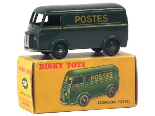 DINKY TOYS (FRANCE) 25BV PEUGEOT D3A 'POSTES' (version avec inscriptions en décalques & 1er type) vert foncé