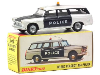 DINKY TOYS (FRANCE) 1429 PEUGEOT 404 Break 'POLICE' bleu nuit & blanc