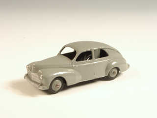 DINKY TOYS (FRANCE) 24R PEUGEOT 203 Petite lunette arrière (version avec intérieur de toit quadrillé & ailes lisses) gris moyen, jantes identiques