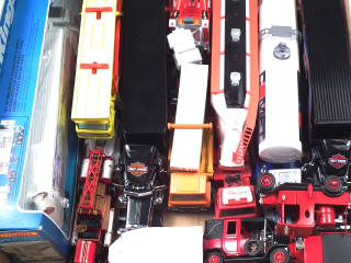 différentes échelles - miniatures reproduisant notamment les modèles : DAF, MACK, FORD, UNIC, CITROEN & PIEBERBILT- on y notamment retrouve la marque MATCHBOX - un modèle avec boîte - petits manques