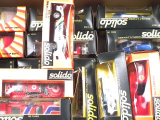 miniatures reproduisant notamment les modèles : RENAULT, BMW, TALBOT, ALFA ROMEO & FERRARI - on y retrouve notamment les marques : SOLIDO & MINI RACING - détails de peinture ajoutés