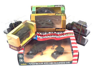 SOLIDO (FRANCE) Ensemble de 9 véhicules militaires & un canon
