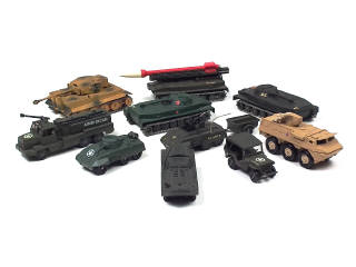 miniatures reproduisant notamment les modèles : TIGRE I, PT76, V.A.B & BERLIET GBC 34 - quelques petits manques