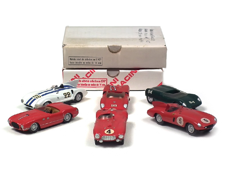réalisation en métal - comprend notamment les modèles : CUNNINGAM C6R, LOTUS 19, 23, FERRARI 375 & 121 - on y retrouve notamment la marque EQUIPE - avec manques & parties à recoller