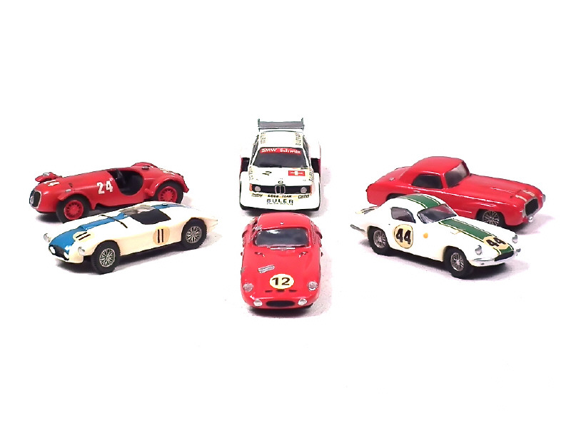 réalisation en métal - miniatures reproduisant notamment les modèles BMW & FERRARI (un modèle en état 'D') - avec manques & parties à recoller