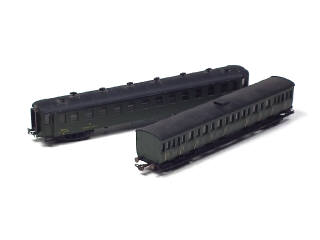 comprend voiture de voyageurs de première classe type OCEM (carrosserie encrassée) & voiture de voyageurs de 2ème classe type TY - traces d'oxydation sur les partie nickelées - petits manques - boîtes non présentées sur le photo