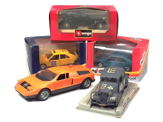 grandes échelles - miniatures reproduisant les modèles MERCEDES & CITROEN - on y retrouve les marques : POLISTIL, BBURAGO, SCHUCO & CHAMPION - 2 véhicules sans boîte - une boîte en état 'c'