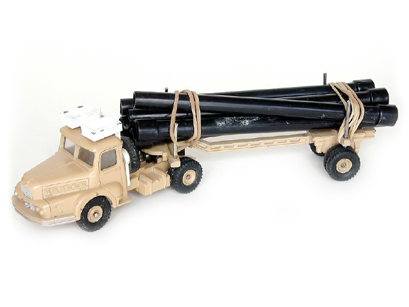DINKY TOYS (FRANCE) 893 UNIC Saharien transport de pipe-lines (version avec jantes concaves & remorque ajourée) sable & blanc