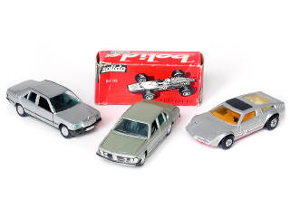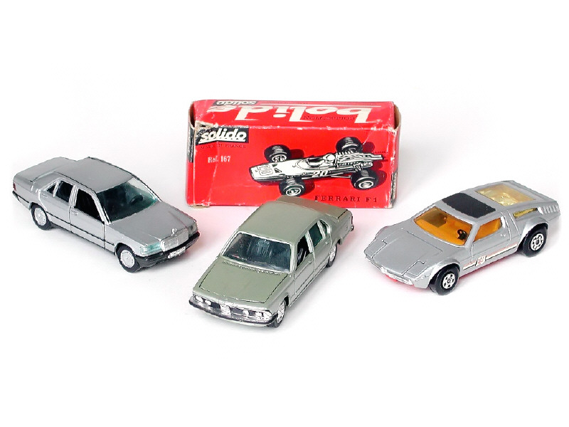 miniatures reproduisant les modèles : MERCEDES 190, BMW 733 & MASERATI BORA - on y retrouve les marques : GAMA & MATCHBOX - on y joint une boîte vide SOLIDO référence 167 état 'c'