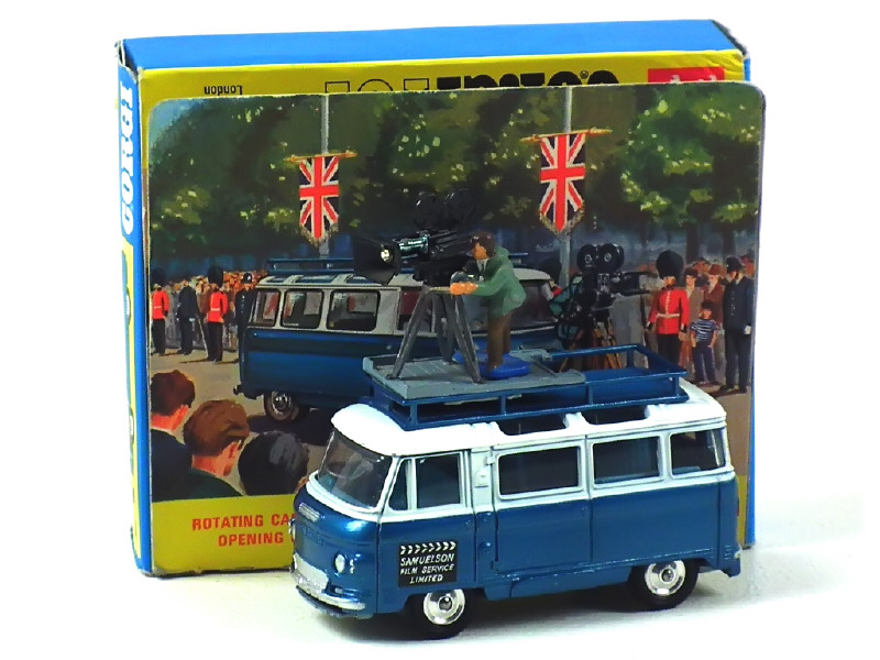 CORGI TOYS (GB) 479 COMMER Bus de reportage avec caméra bleu métal & blanc
