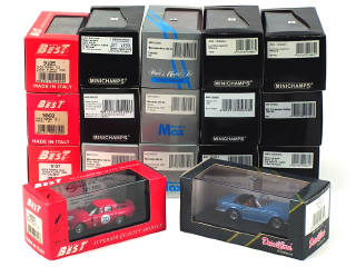 miniatures reproduisant les modèles : ALFA ROMEO, MERCEDES, TRIUMPH, MG, LAMBORGHINI, MASERATI & BENTLEY - on y retrouve les marques : MODEL BEST, MINICHAMPS, MODELS MAX & DETAILCARS - petits manques