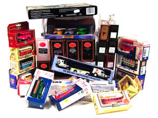 petites échelles - on y retrouve les marques : CORGI, OXFORD DIECAST, EFE & LLEDO (une boîte en état 'c') - 14 véhicules regroupés dans 5 coffrets