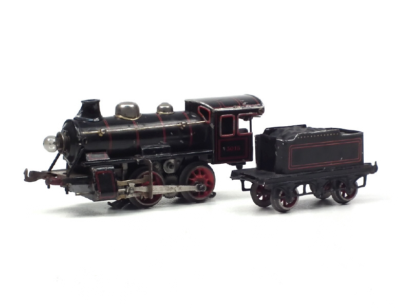 BING (Ecartement O) Locomotive à vapeur type 020 avec tender noir, filets rouges