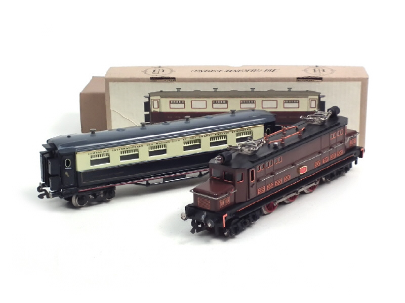 longueur 37,5 cm - système d'éclairage non testé - importantes traces de métal fatigue avec déformations sur les extrémités de carrosserie, les roues & leurs supports - quelques manques