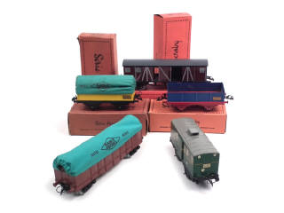 comprend : wagon couvert, wagon travaux publics bâché 'SAINT FRERES', fourgon postal (boîte en état 'c'), wagon-tombereau & wagon-tombereau bâché 'SAINT FRERES'