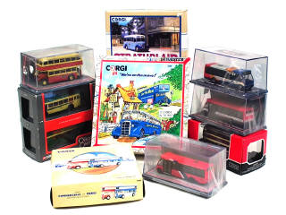 CORGI TOYS (GB) Ensemble de 9 autobus, 2 autocars, un camion & une camionnette