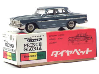YONEZAWA TOYS DIAPET (JAPON) 119 PRINCE GLORIA 1963 gris bleu métal, intérieur gris bleu ciel