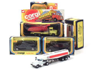 CORGI TOYS (GB) Ensemble de 2 voitures, 2 camions & une caravane