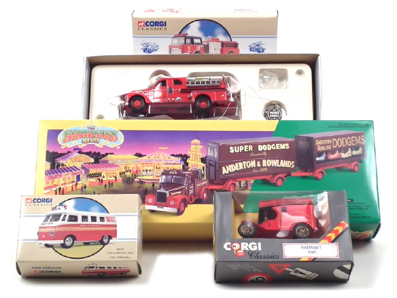 'COLLECTION FIRE SERVICE' avec certificat d'édition limitée numéroté 05118/11500 exemplaires - on y joint une FORD T 'KALAMAZOO FIRE DEPT' en état 'A,c' avec bulletin d'inscription au club 'CORGI FRANCE' - manques de papier sur la boîte
