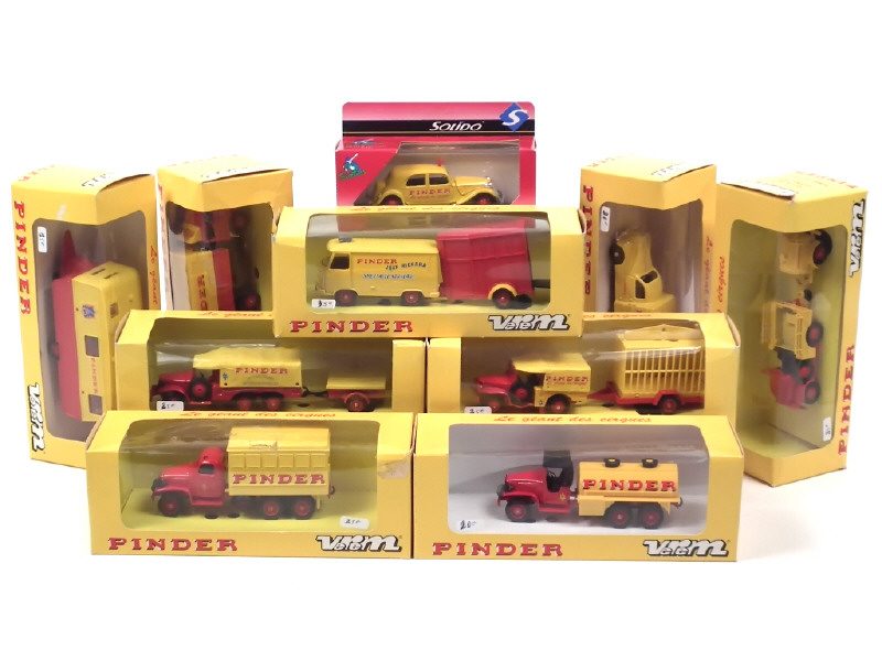 VEREM (FRANCE) Ensemble de 9 véhicules & une caravane 'PINDER' rouge & jaune
