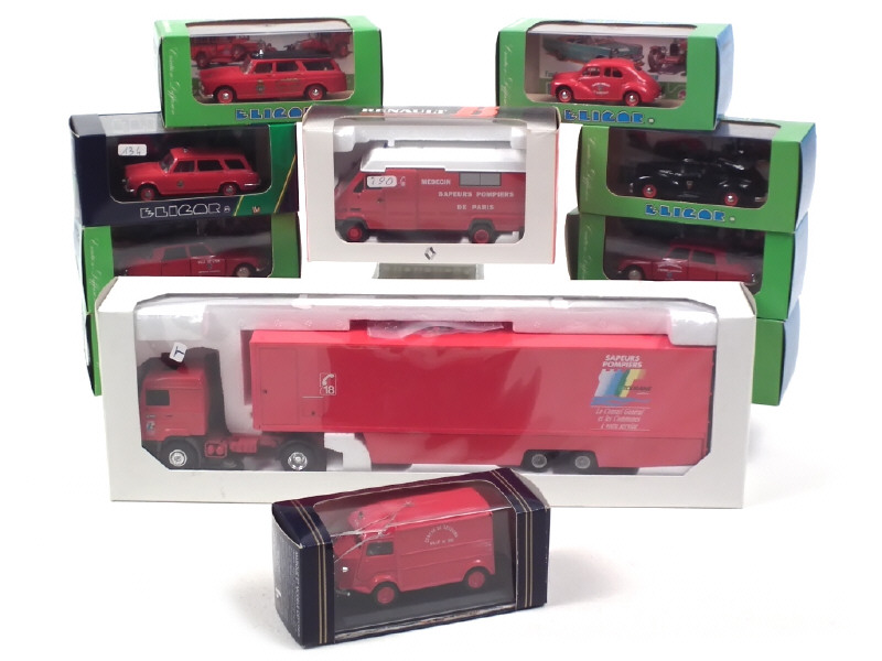 ELIGOR (FRANCE) Ensemble de 9 véhicules de pompiers