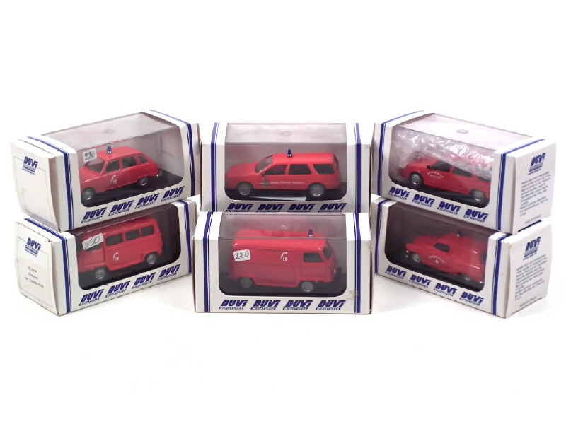 DUVI (FRANCE) Ensemble de 6 véhicules de pompiers rouge