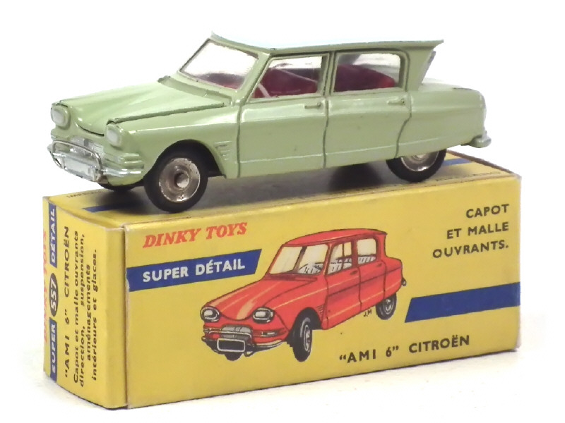 DINKY TOYS (FRANCE) 557 CITROËN AMI 6 (version avec roue de secours sous le capot) vert tilleul, toit blanc cassé