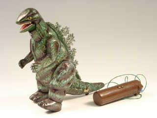 référence 76E du livre de BRIAN MORAN 'BATTERY TOYS' - hauteur 26 cm - en action le monstre avance, bouge les bras, ouvre la bouche qui s'éclaire & émet de petits cris - les mécanismes fonctionnent - in action, the monster moves forward waving his arms, he opens his mouth which lights up & lets out a series of cries - in working condition
