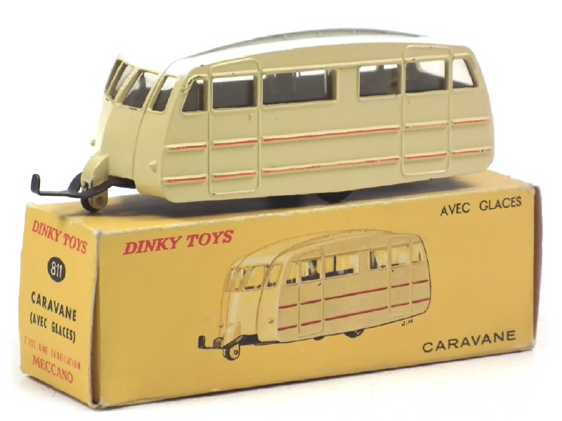 DINKY TOYS (FRANCE) 811 Caravane (version avec toit strié) crème, filets rouges, toit blanc