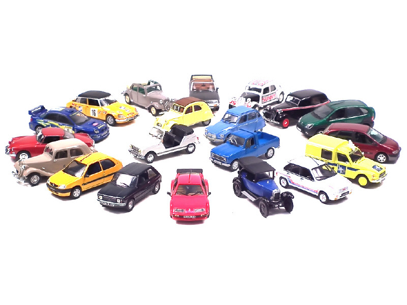 miniatures reproduisant les modèles : RENAULT, CITROEN, ALPINE & SUBARU - on y retrouve notamment les marques UNIVERSAL HOBBIES, HONGWELL & ALTAYA - petits manques & parties à recoller