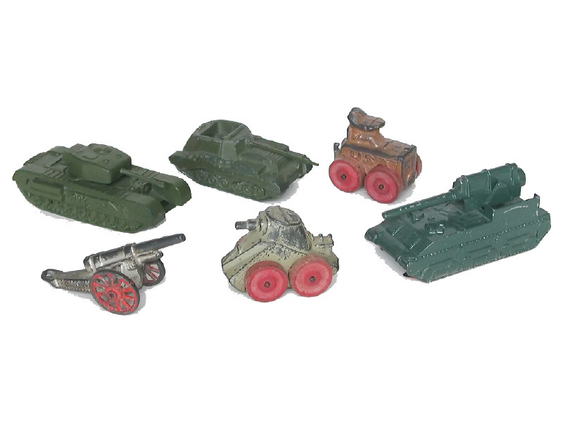 états de 'C' à 'F' - miniatures reproduisant les modèles : char CHURCHILL, char VALANTIN & divers - on y retrouve les marques : DRS, MIDGETOY & divers USA