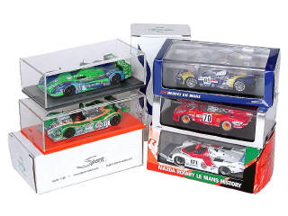 miniatures reproduisant les modèles : PORSCHE 935 1979, MAZDA 757 1986, COURAGE C60 PEUGEOT 2001, COURAGE C60 PEUGEOT 2002 & SPYKER C8 GT2R 2008
