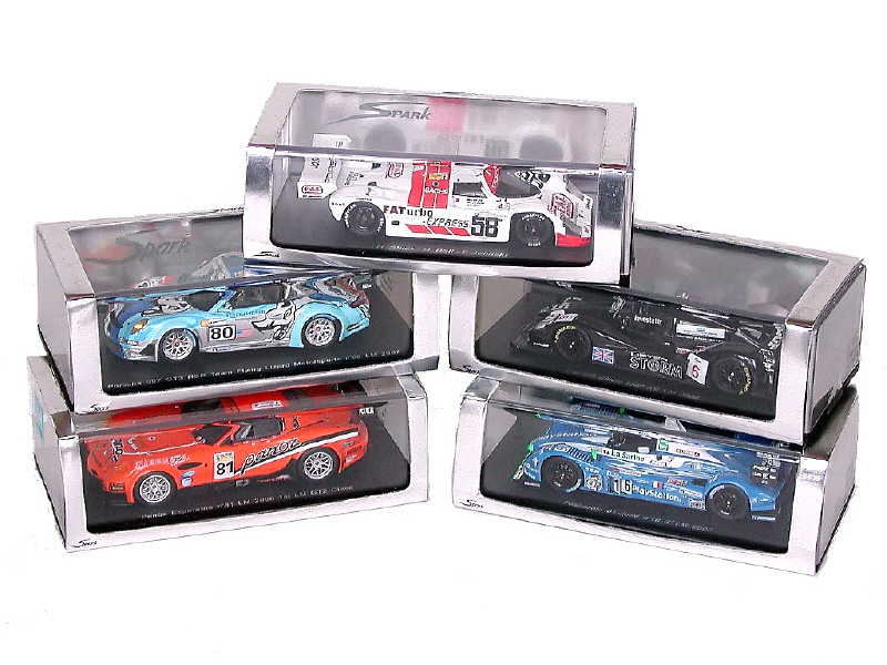 miniatures reproduisant les modèles : PORSCHE 962C 1991, LISTER LMP 2006, PANOZ GT2 2006, PORSCHE 997 RSR GT3 2007 & PESCAROLO JUDD 01 2007