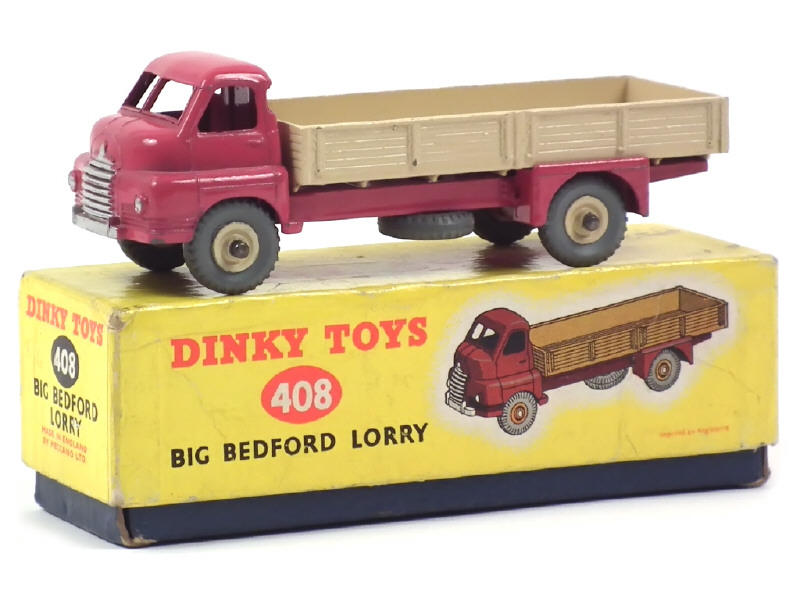 DINKY TOYS (GB) 408 BIG BEDFORD Plateau à ridelles rose & crème, jantes crème
