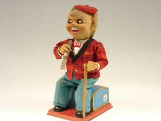 référence 48D du livre de BRIAN MORAN 'BATTERY TOYS' - hauteur 30 cm - en action le personnage fume un cigare dont l'embout s'éclaire tout en recrachant de la fumée - le fumeur se lève & se rassoit tandis que ses yeux s'ouvrent & se ferment - mécanismes fonctionnent - in action, the charcter smokes a cigar whose end lioghts up smoke comes out - the smoker stands up, then sits back down as his eyes open & close - in working condition