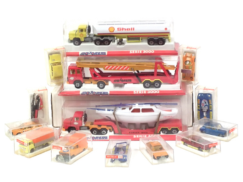 MAJORETTE (FRANCE) Ensemble de 9 voitures, 4 camions, un bateau & une moto-neige