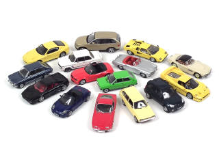 miniatures reproduisant les modèles : AUDI, BMW (5 exemplaires différents), FERRARI (3 exemplaires différents), OPEL, LAMBORGHINI (2 exemplaires différents), MERCEDES & TOYOTA (2 exemplaires différents) - petits manques - plusieurs rétroviseurs à recoller