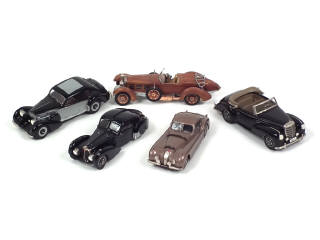 comprend notamment : MERCEDES 300SL, BUGATTI (2 exemplaires, plusieurs éléments à recoller sur un modèle) & JAGUAR XK 120 coupé - quelques petits manques