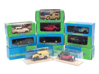 miniatures reproduisant les modèles : CITROEN (9 exemplaires), FORD, PANHARD & DELAGE
