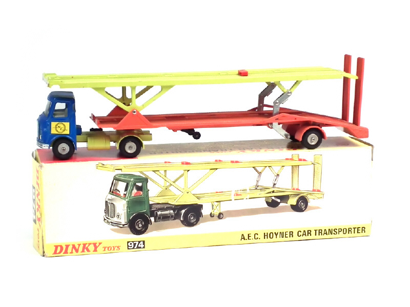 DINKY TOYS (GB) 974 A.E.C. Transporteur de voitures bleu métal, jaune & orange