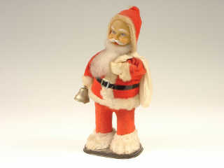 référence 68A du livre de BRIAN MORAN 'BATTERY TOYS' - hauteur 21 cm - en action le père-noël se balance de droite à gauche tout en secouant sa clochette - mécanismes à revoir - in action, Father Christmas rocks from side to side ringing his bell - mechanism subject to verification