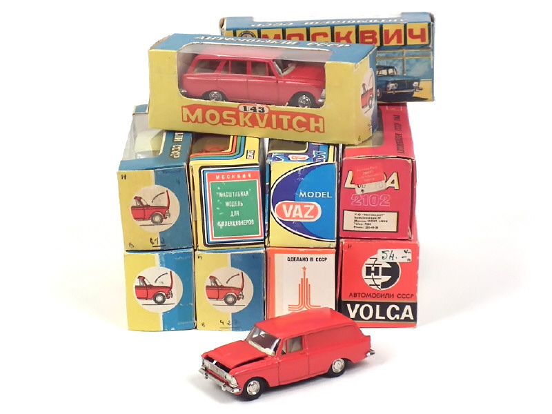 miniatures reproduisant les modèles : LADA, MOSKVITCH (une boîte en état 'd') & VOLGA - on y retrouve notamment la marque NOVOEXPORT - présence de ruban adhésif sur 7 voitures
