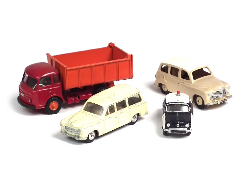 comprend : SAVIEM benne de chantier, RENAULT PRAIRIE, DAUPHINE POLICE & PEUGEOT 403 familiale (état 'E') - quelques pièces non d'origine