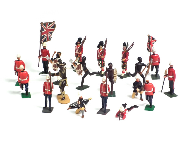 réalisation en plomb - comprend 5 zoulous (dont un en état 'C') & 14 soldats britaniques