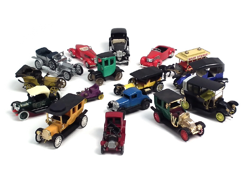 état de 'A' à 'F' - miniatures reproduisant notamment les modèles : ROLLS ROYCE, DUESENBERG, AUBURN, RENAULT, CHEVROLET & SIMPLEX - on y retrouve notamment les marques : MATCHBOX, RENWAL, FRANKLIN MINT, LLEDO & IGRA - avec retouches, manques & parties cassées
