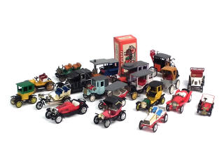 états de 'A' à 'R' - miniatures reproduisant notamment les modèles : BRAZIER, PANHARD & LEVASSOR, SCOTTE, RENAULT, AUDIBERT LAVIROTTE & DE DION BOUTON - un modèle avec boîte - avec manques, parties cassées & retouches