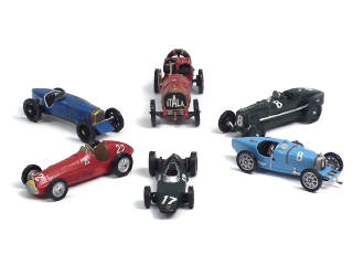 kits montés en métal - comprend : G.P SUNBEAM, BRM V8, ALFA ROMEO TIPO, DELAGE, BUGATTI TYPE 35 (train arrière déformé), ITALA - petits détails de peinture blanche ajoutés sur les planchers
