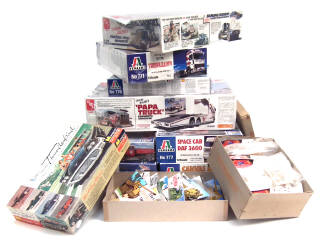 on y retrouve notamment les marques : ITALERI, MONOGRAM, MATCHBOX & AMT - on y joint 7 sachets de différents navires à monter de la marque AIRFIX - semblent complets - possibilités de petits éléments manquants
